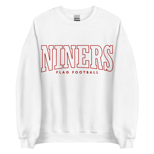 Niners Flag Football Crewneck Sweatshirt | Bold Text Front Design | ADULT Unisex Sizing